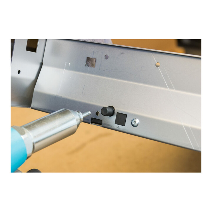 - Professionelles Nieten im Dauereinsatz mit Stahl-, Edelstahl-, Aluminium- und Kupfer-Nieten bis 6,4 mm
