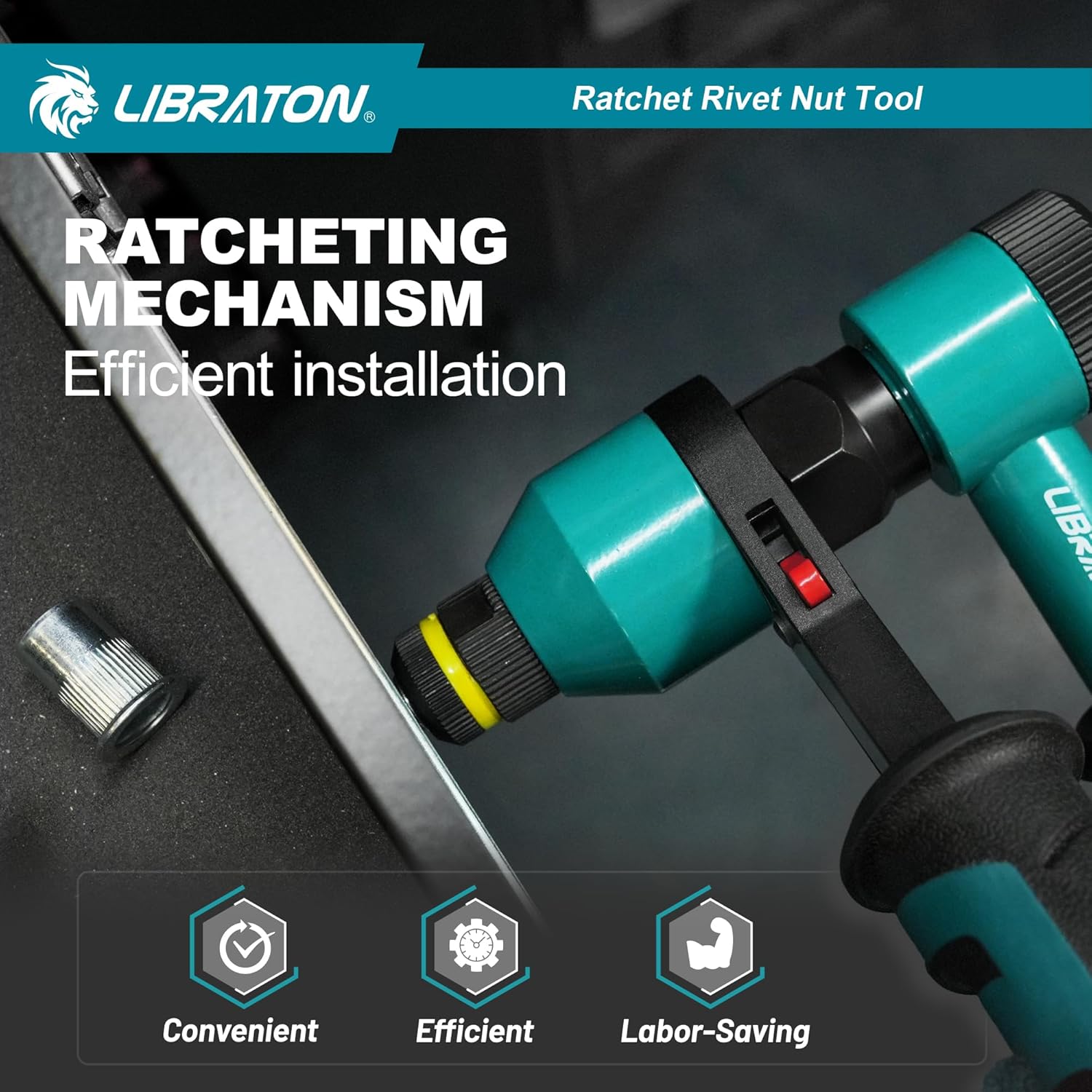 - RATSCHENMECHANIK: Das Nietmutternzange ist mit einem leichtgängigen Ratschensystem ausgestattet, das die effiziente Installation von Nietmuttern erleichtert. Dieser Mechanismus ermöglicht eine sichere Befestigung ohne übermäßigen manuellen Kraftaufwand und steigert so die Produktivität.