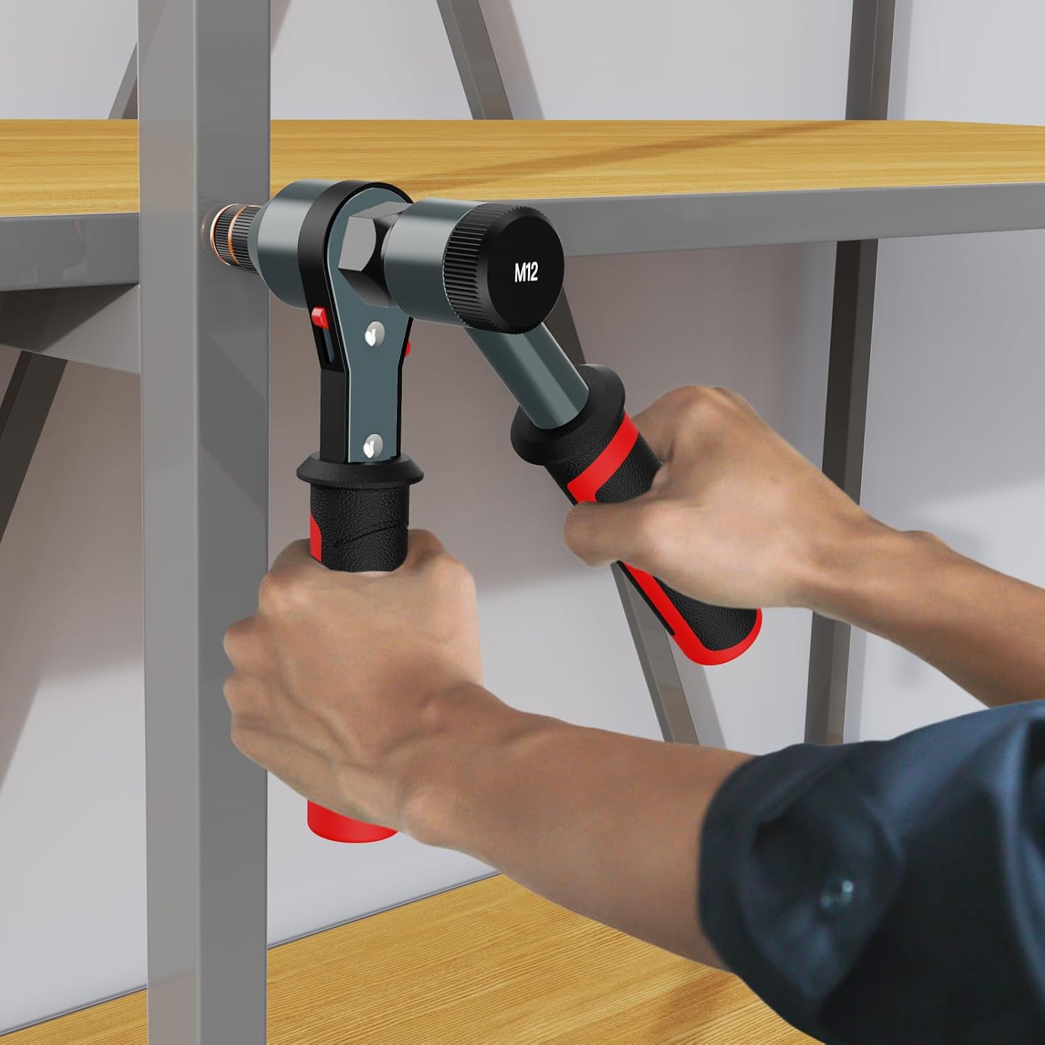- Konsistente Ergebnisse Der Ratschenmechanismus stellt sicher, dass jede Nietmutter mit einem konstanten Kraftniveau installiert wird, was zu zuverlässigen und konsistenten Ergebnissen für Mutterdichtheit und Sicherheit führt.